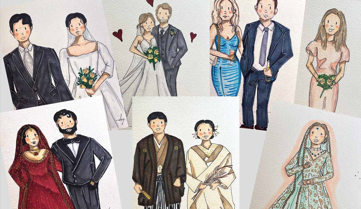 FOR PRIVATE CLIENTS I OFFER LIVE ILLUSTRATIONS ON YOUR WEDDING DAY. I BELIEVE THAT ART SHOULD FEEL AS MEANINGFUL AS THE MOMENT IT REPRESENTS. I FEEL INCREDIBLY HONOURED TO TURN YOUR DAY INTO SOMETHING BEAUTIFULLY TANGIBLE. WHETHER IT’S A KEEPSAKE TO CHERISH, A LIVE SKETCH TO WOW YOUR GUESTS, OR CUSTOM STATIONERY TO SET THE TONE OF YOUR